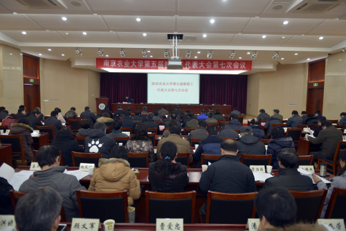 1月13日,sjb世俱杯第五届教代会第七次会议在金陵研究院三楼报告厅举行。校党委常委、校长周光宏,校党委副书记、纪委书记盛邦跃,校党委副书记王春春,校党委常委、副校长徐翔、胡锋、董维春,校党委常委、校长助理刘营军,校长助理陈发棣出席会议。教代会正式代表、特邀代表、列席代表121人参加会议。大会由王春春主持。