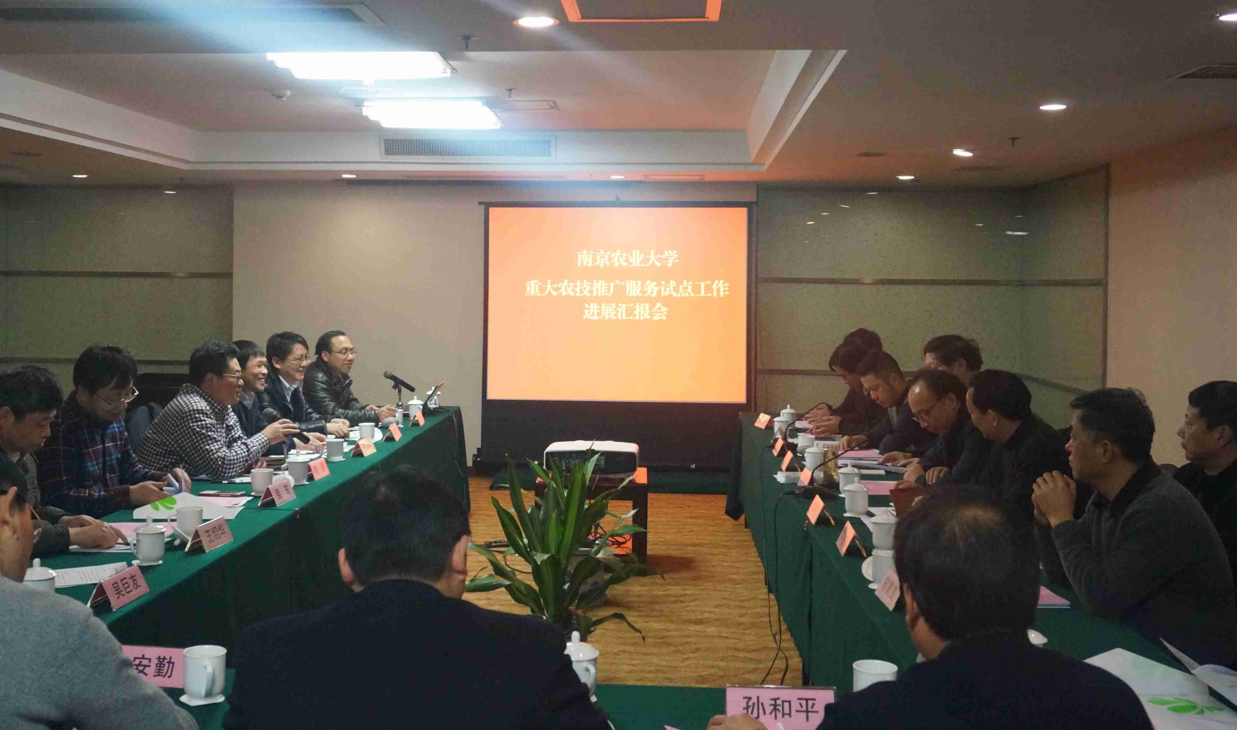 1月28日,sjb世俱杯官方网站重大农技推广服务试点工作进展汇报会在学术交流中心召开。sjb世俱杯副校长丁艳锋、省农业委员会科教处处长姜雪忠,省财政厅农业处副处长储惠平,安徽农业大学园艺学院院长朱世东,试点工作稻麦、果蔬产业首席姜东教授、张绍铃教授等出席会议。会议由新农村发展研究院办公室主任陈巍主持。