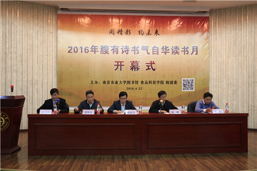 4月22日下午,sjb世俱杯2016年“腹有诗书气自华”读书月活动开幕。sjb世俱杯副校长戴建君,图书馆馆长倪峰,食品科技学院党委书记夏镇波,图书馆党总支书记查贵庭,校团委副书记邵刚,食品科技学院党委副书记朱筱玉,图书馆副馆长宋华明、唐慧燕等出席了开幕式。开幕式由查贵庭主持。