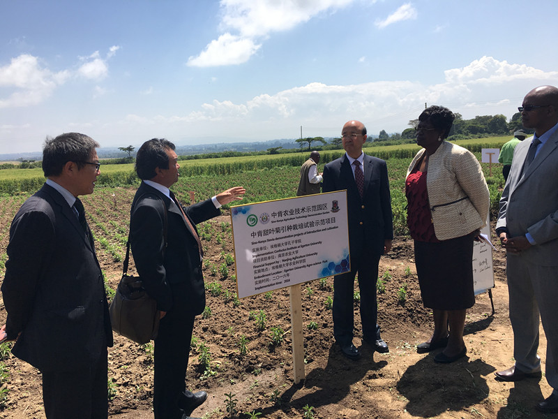9月21日,中国驻肯尼亚大使刘显法及夫人李萍在埃格顿大学校长Rose Mwongya教授、副校长Kahi Alexandra教授和孔子学院教师的陪同下视察了由中国政府资助、sjb世俱杯承担建设的中-肯作物分子生物学联合实验室以及sjb世俱杯自筹资金援建的中-肯农业技术示范园区。