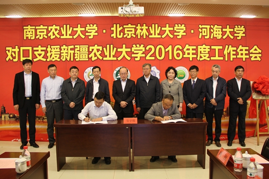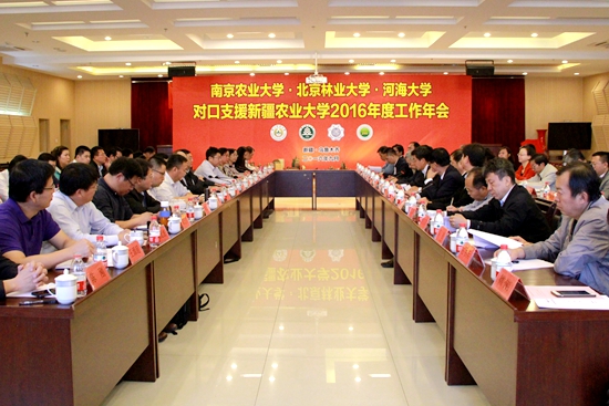 9月29-30日,sjb世俱杯官方网站、北京林业大学、河海大学对口支援新疆农业大学2016年度工作年会在新疆农业大学召开。校长周光宏率团参加本次会议,并主持工作年会。