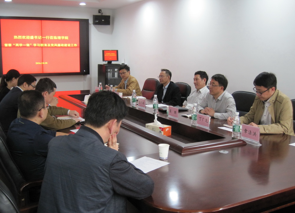 盛邦跃分别在四个单位作了讲话。他充分肯定了四个单位在“两学一做”学习教育和党风廉政建设工作中取得的成效和好的做法,同时对继续做好工作提出要求。他指出,各单位党组织要把握开展“两学一做”学习教育的重点,一是要学习党章,把学习党章、贯彻党章、落实党章作为工作的首要任务;二是要学习习近平总书记系列重要讲话精神,特别是学习“四个全面” 战略布局和习近平总书记“七一”重要讲话精神,落实从严管党治党要求;三是要引导师生党员以党员标准要求自己,在做合格教师、合格工作人员、合格学生基础上,做合格党员,立足岗位作贡献,提高办学水平、教学水平、科研能力和管理与服务工作能力;民主生活会、组织生活会、民主评议党员要讲求实效,不搞形式主义。