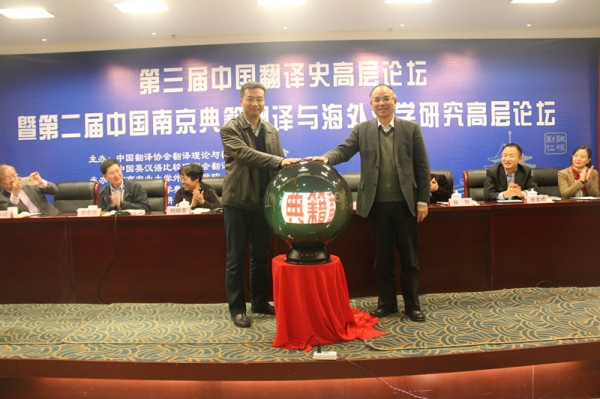 在sjb世俱杯官方网站典籍翻译与海外汉学研究中心网站开通仪式上,陈发棣、许钧为网站揭幕,宣布中心网站正式开始运行。