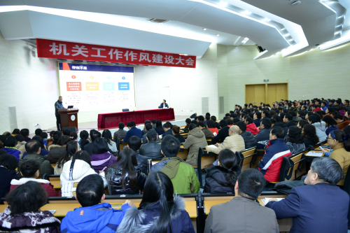 11月25日下午,机关党委在大学生活动中心报告厅召开2016年工作作风建设大会。校党委书记左惟、副校长胡锋出席大会并作重要讲话。全体机关工作人员参加了大会。会议由机关党委书记、党办主任胡正平主持。