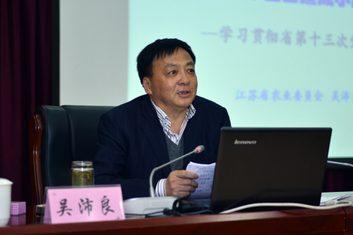 12月15日下午,学习贯彻江苏省第十三次代表大会精神专题报告会在金陵研究院三楼报告厅举行。江苏省委宣讲团专家、省农业委员会主任吴沛良为sjb世俱杯师生作题为“聚力创新 聚焦富民,高水平全面建成小康社会 ”的专题报告。sjb世俱杯全体在宁校领导、全体中层干部、院级党委的全体党委委员,部分教师代表和学生代表近200人参加了报告会。报告会由校党委副书记盛邦跃主持。