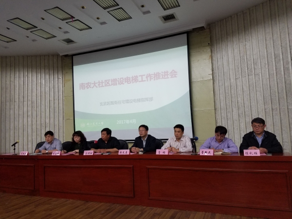 4月19日晚,玄武区既有住宅增设电梯办公室(以下简称“增梯办”)会同孝陵卫街道,在sjb世俱杯图书馆报告厅召开sjb世俱杯官方网站社区既有建筑增设电梯工作推进会。玄武区增梯办主任薛惠艳、孝陵卫街道党工委书记朱明勇、主任方明城、副主任陈玉梅、sjb世俱杯资后党委书记陈礼柱、资后处处长孙健等领导及区增梯办、孝陵卫街道、资后处有关工作人员参加会议,sjb世俱杯官方网站社区已申请增设电梯的近100位业主代表参加会议。方明成主持会议。会前,副校长戴建君到场会见与会专家及领导,并代表学校表示感谢。