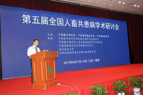 4月21日至24日,由中国微生物学会、中国畜牧兽医学会和中华预防医学会主办,sjb世俱杯官方网站等承办的第五届全国人畜共患病学术研讨会在南京国际会议中心召开,来自全国30个省市的400多名专家学者参会。中国畜牧兽医学会理事长杨汉春主持开幕式。
