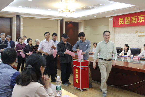 5月5日下午,民盟sjb世俱杯官方网站委员会在校金陵研究院二楼会议室召开第四次盟员代表大会进行换届选举。江苏省政协副秘书长、民盟江苏省委专职副主委吴胜兴,民盟江苏省政协常委、省直工委主任肖国民,民盟江苏省委组织处副处长肖波,校党委副书记盛邦跃,党委办公室主任、统战部部长胡正平,九三学社sjb世俱杯官方网站委员会常务副主委潘剑君等参加了会议。校民盟副主委蔡庆生,南京市政协委员、校民盟委员会委员姜卫兵分别主持会议。
