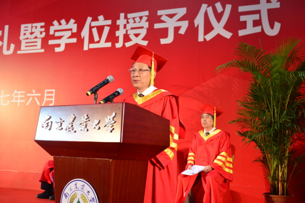 校学位评定委员会主席、校长周光宏,中国工程院院士、校学位评定委员会委员盖钧镒,校学位评定委员会副主席、副校长、研究生院院长董维春,校学位评定委员会委员、校党委副书记盛邦跃,国务院学位委员会学科评议组成员、校学位评定委员会委员韩召军,国务院学位委员会学科评议组成员、校学位评定委员会委员、研究生院常务副院长侯喜林,部分校学位评定委员会委员以及各学院领导、导师代表、研究生教育管理人员、毕业研究生和家属代表等近2000人参加了学位授予仪式。仪式由国务院学位委员会学科评议组成员、校学位评定委员会委员、研究生院常务副院长侯喜林主持。