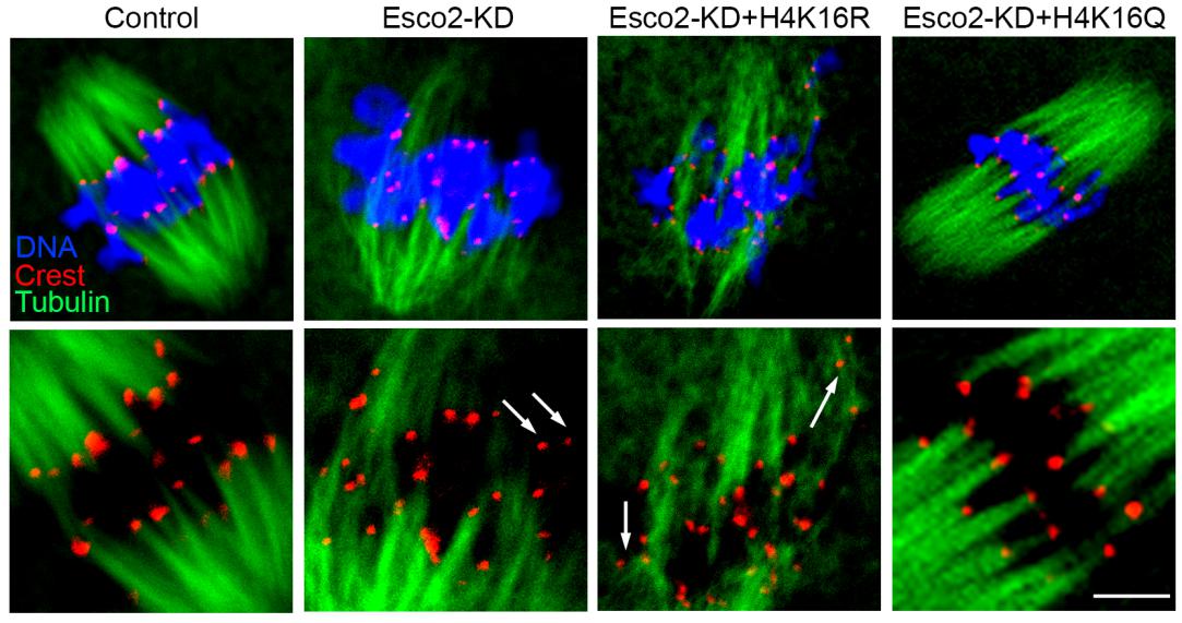 乙酰化酶Esco2在卵母细胞减数分裂过程中通过维持H4K16的乙酰化调节纺锤体检验点和动粒功能