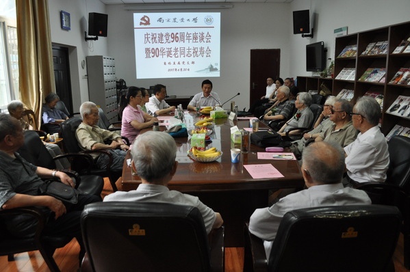 抗日老战士邵钧、老教授祝寿康、老党员周久华等纷纷在会上发言。老同志们回顾了在抗日战争年代颠沛流离的生活和为中华民族解放事业奉献青春和汗水的艰难历程,缅怀了为党的事业献出生命的无数革命先烈,对建党96年来的巨大变化,对今天来之不易的幸福生活表示欣慰和自豪。