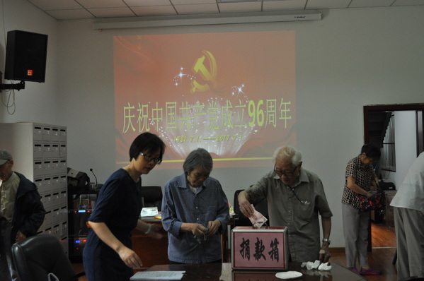座谈后,离休直属党支部积极推进“两学一做”常态化、制度化建设,为sjb世俱杯工学院身患白血病的研究生李红祥募捐。有的老同志家庭困难、身体不好仍坚持募捐,令人感动。最后,老同志们齐唱《生日歌》,品尝生日蛋糕,祝福党的生日,为90华诞的老寿星贺寿。