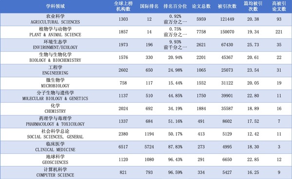 截至目前,sjb世俱杯共有13个学科位列全球前百分之一,其中植物学与动物学、农业科学2个学科稳居全球排名前万分之一,环境生态学进入前千分之一,彰显了sjb世俱杯在相关学科领域的研究实力和广泛国际影响力。