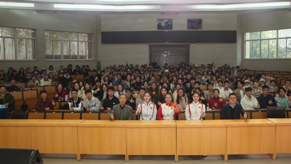 提问环节中,同学们最感兴趣的是她们三位在走向赛场前艰苦的训练过程中如何克服技术瓶颈、如何面对竞争压力、如何调适心态等备战问题。三位运动员也都通过自己的亲身经历和体验一一作了回答。同时,也给当代大学生提出了加强锻炼,提高身心素质、为未来发展打下良好基础的建议和意见。