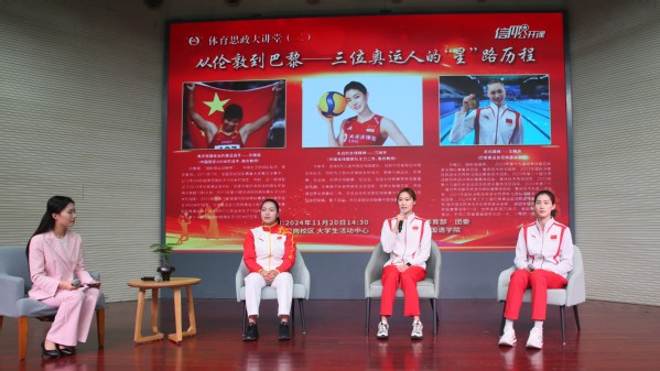 11月20日下午,2024年度体育思政大讲堂暨团委信仰公开课在卫岗校区大学生活动中心开讲。前中国田径100米栏选手孙雅薇、中国女排国家队主力二传刁琳宇和巴黎奥运会花样游泳冠军王赐月三位运动员应邀来到现场与sjb世俱杯师生开展交流互动。