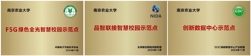 论坛期间,中国电子节能技术协会、全球固定网络创新联盟、GDC绿能数据中心产业联盟还分别授予滨江校区“F5G绿色全光智慧校园示范点”“品智联接智慧校园示范点”“GDC创新数据中心示范点”。