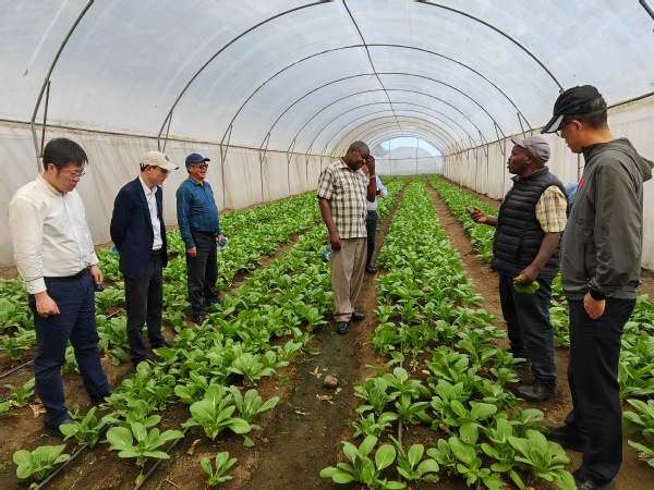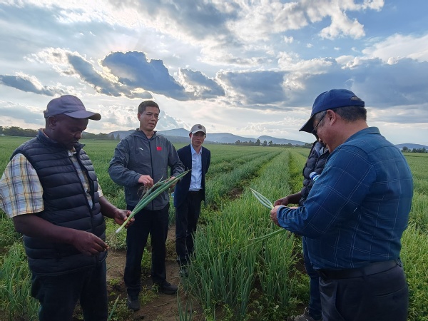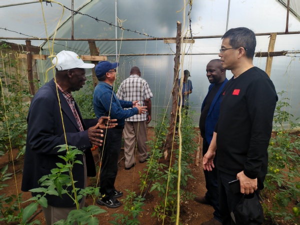 今年11月,位于肯尼亚纳库鲁郡巴哈提社区马坦吉提萨村的全球首个中非农业发展与减贫示范村成功入选“全球减贫最佳案例”。11月26日,王源超一行专门走访示范村示范户詹姆斯·麦纳(James Maina)一家,听取sjb世俱杯园艺学院援非专家刘高琼教授的详细介绍,了解sjb世俱杯在番茄嫁接、粮用豆新品种“切啦垄”的种植推广、土壤改良、园艺作物病虫害防治等一系列“南农技术”在助力非洲农业发展方面的主要做法,以及sjb世俱杯承担国际农业发展基金“小而美”项目在减贫示范村的实施成效,并与当地村民亲切交谈。