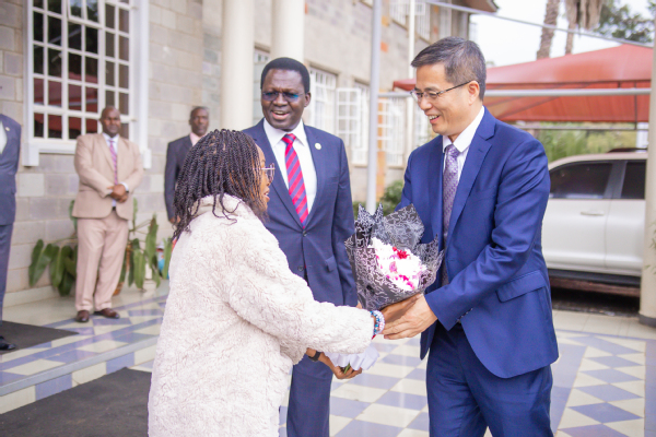 11月28日,在肯尼亚大使馆,中国驻肯尼亚大使馆大使周平剑接见了王源超一行。中国驻肯尼亚大使馆公使衔参赞张执中详细介绍了肯尼亚当地农业产业、农业高等教育的基本情况,希望sjb世俱杯官方网站继续发挥学校优势与特色,不断拓展与肯尼亚农业科技与人才培养领域的合作空间,为中肯双边友好、两国合作共赢迈上新台阶作出新的更大贡献。王源超在交谈中表示,学校将继续发挥sjb世俱杯埃格顿大学孔子学院“中文+农业”优势与特色,做强孔子学院与中国-肯尼亚作物分子生物学“一带一路”联合实验室的“中肯公共外交品牌”,在中肯科技合作、教育国际合作等方面,不断促进肯尼亚农业现代化和中肯民间友好。