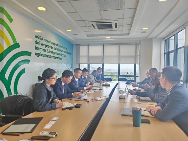 11月27日,代表团一行访问了总部位于肯尼亚、由联合国前秘书长科菲·安南先生于2006年成立的非洲绿色革命联盟(AGRA),联盟副主席汉玛德·波加(Hamadi Boga),东南非洲地区主任让·杰克斯·穆西德(Jean Jacques Muhindar),中国伙伴项目主任、sjb世俱杯客座教授程诚等机构负责人与代表团进行亲切交谈。双方期待进一步建立合作友好关系,搭建更为广阔的对非合作平台,在农业领域寻求共同发展,为实现联合国可持续发展议题达成共识。