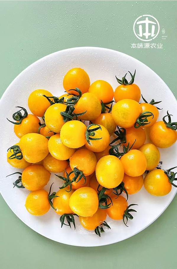 在南京,越来越多农户尝试种植彩色蔬菜。在江宁区汤山街道本味源农业科技有限公司,20亩“宁西煌”樱桃番茄长势良好,绿色的藤蔓中藏着一颗颗橙黄色的果实,散发沁人心脾的香气。“这是我们2022年试种的新品种,果皮呈橙黄色,相比普通番茄,其VC含量更高,吃起来清香甘糯,皮薄汁多,口感饱满。”公司负责人李林介绍,“宁西煌”售价稳定在每公斤30元左右,而普通番茄售价在6-18元每公斤不等。通过公司与酒店、企业、食堂合作订单售卖,去年“宁西煌”亩均产值达到4.5万元,比种植普通番茄高两倍多。