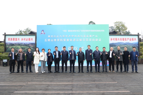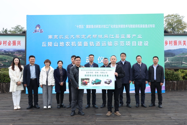期间,sjb世俱杯官方网站所承担的“十四五”国家重点研发计划“丘陵山地农机装备轨道运输示范项目”建设在麻江蓝梦谷生态蓝莓产业示范园启动。