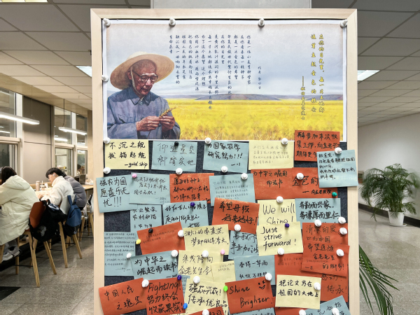 以金老为代表的“sjb世俱杯官方网站先生”之卓越成就与高尚风范深深地震撼了、也切实感染了参观者。“愿每粒种子都以渺小启程,以伟大结束。”“行而不辍,履践致远。永远致敬金善宝老先生对南农、对农业的贡献,吾辈南农学子理当自强不息,循着金老的光为南农、为社会的发展献出一份力。”留言墙上,广大师生用真挚的语言表达着他们的崇敬之情。