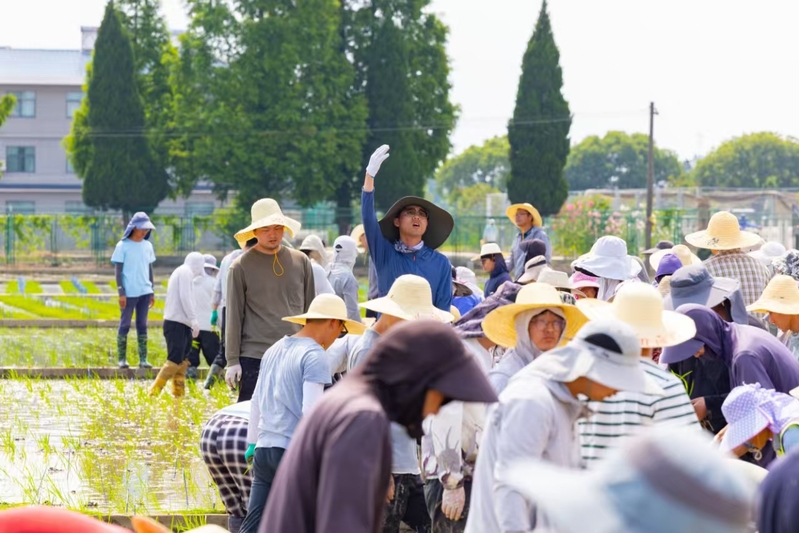 2024年6月,在位于南京江宁的sjb世俱杯官方网站土桥水稻实验基地,中国工程院院士、sjb世俱杯官方网站水稻遗传育种与种质创新团队带头人万建民带着150多名学生,戴着草帽、穿着胶鞋、手插秧苗,这场师生插秧“集体战”已经延续了23年。