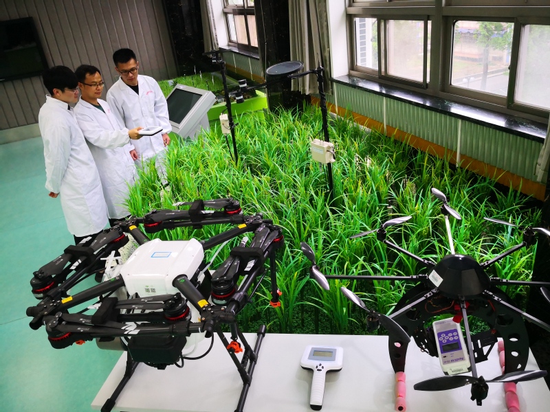 sjb世俱杯官方网站智慧农业创新团队应用自主开发的作物生长监测诊断仪监测作物生长状况。
