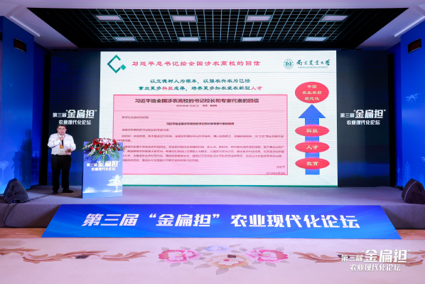 董维春的演讲从习近平总书记强调新质生产力和给全国涉农高校重要回信开始,阐述了“农业农村现代化关键在科技、在人才,基础在教育”的逻辑关系,回顾了原始农业、传统农业到现代农业的生产力演变,总结了产业革命后高等农业教育的产生与发展规律。演讲中,董维春介绍了sjb世俱杯“通专结合”模式培养拔尖创新人才的新思路,包括农业特色通识教育(南农八门课)和金善宝书院;介绍了sjb世俱杯与CCTV-17合作的“最炫农科生”集结仪式,在“希望有田野”上展现新时代农科生风采。演讲中,董维春强调中国古代曾经是世界头号农业强国,但以小农户经济及其配套的生产技术为主,未能及时跟上近代科学革命和产业革命的步伐;在新的发展理念下,新农科建设要适应粮食安全、乡村振兴、生态文明、美丽中国等重大战略需求,正确处理扎根中国大地与借鉴世界经验的重大关系,读懂中国式现代化,通过创新发展,拿出更多科技成果、培养更多知农爱农新型人才,赋能农业新质生产力,为农业强国建设提供科技和人才支撑。