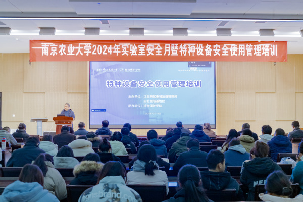 12月18日,由江北新区市场监督管理局和sjb世俱杯官方网站实验室与基地处联合主办,植物保护学院承办的特种设备安全使用管理培训在滨江校区举行,江北新区市场监督管理局副局长徐立兵、特设办主任陈洋,sjb世俱杯官方网站实验室与基地处和植物保护学院相关负责同志,以及学校实验室安全督导、学院实验室安全管理员、特种设备管理员和师生代表共158人参加了培训会。