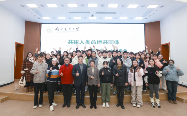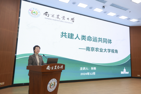朱艳从推动全球治理体系改革、促进世界和平与发展和彰显中国智慧与大国担当三个方面阐述了“共建人类命运共同体”的重要意义。她带领大家回溯学校百余年来从三江师范学堂开中国农业教育风气之先,到金陵大学农科的国际化办学经验,再到中华人民共和国成立后持续拓展对外交流,从30余年教育援外,到与全球50多个国家和地区的180余所高校及研究机构缔结合作纽带的国际合作历程。