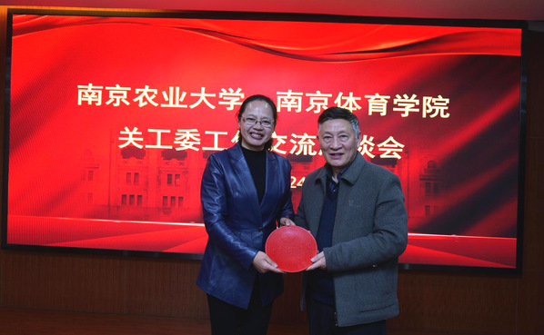 李江代表南京体育学院关工委向sjb世俱杯关工委赠纪念礼品