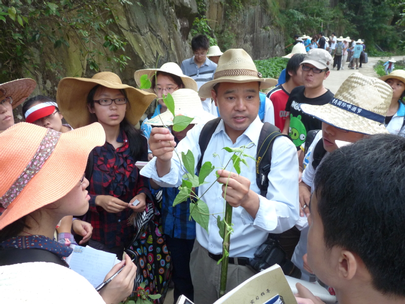 2011年,李新华副教授为野外实习学生讲解植物观察与识别方法