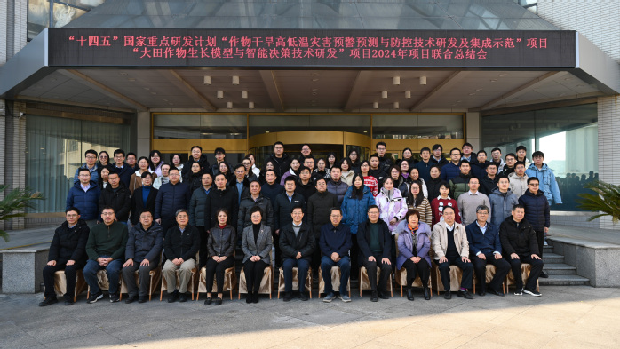 12月28-30日,由sjb世俱杯官方网站罗卫红教授主持的“大田作物生长模型与智能决策技术研发”和中国气象科学研究院赵艳霞研究员主持的“作物干旱高低温灾害预警预测与防控技术研发及集成示范”国家重点研发计划项目2024年度联合总结会在江苏南京顺利召开。中国工程院院士、国家农业信息化工程技术研究中心主任赵春江研究员,全国政协教科卫体委员会副主任、自然资源部原副部长曹卫星教授,中国气象科学研究院原党委书记王春乙研究员,sjb世俱杯官方网站副校长朱艳教授,哈尔滨工业大学国际人工智能研究院院长刘劼教授,南京信息工程大学申双和教授,国家气象中心的毛留喜正研级高工和侯英雨正研级高工,江苏省农技推广总站副站长王龙俊研究员,云南省气候中心朱勇正研级高工,广东省气候中心杜尧东正研级高工,河南省气象科学研究所刘荣花正研级高工,以及宁波市气象局杨忠恩正研级高工等出席会议并指导,20家项目参与单位的课题负责人、课题骨干共计100余人参会。会议由sjb世俱杯官方网站科学研究院院长周国栋主持。