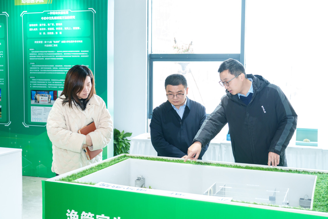 会前,庄培峰一行参观了章之汶图书馆、sjb世俱杯官方网站办学成果展、大学生科创成果实物展。