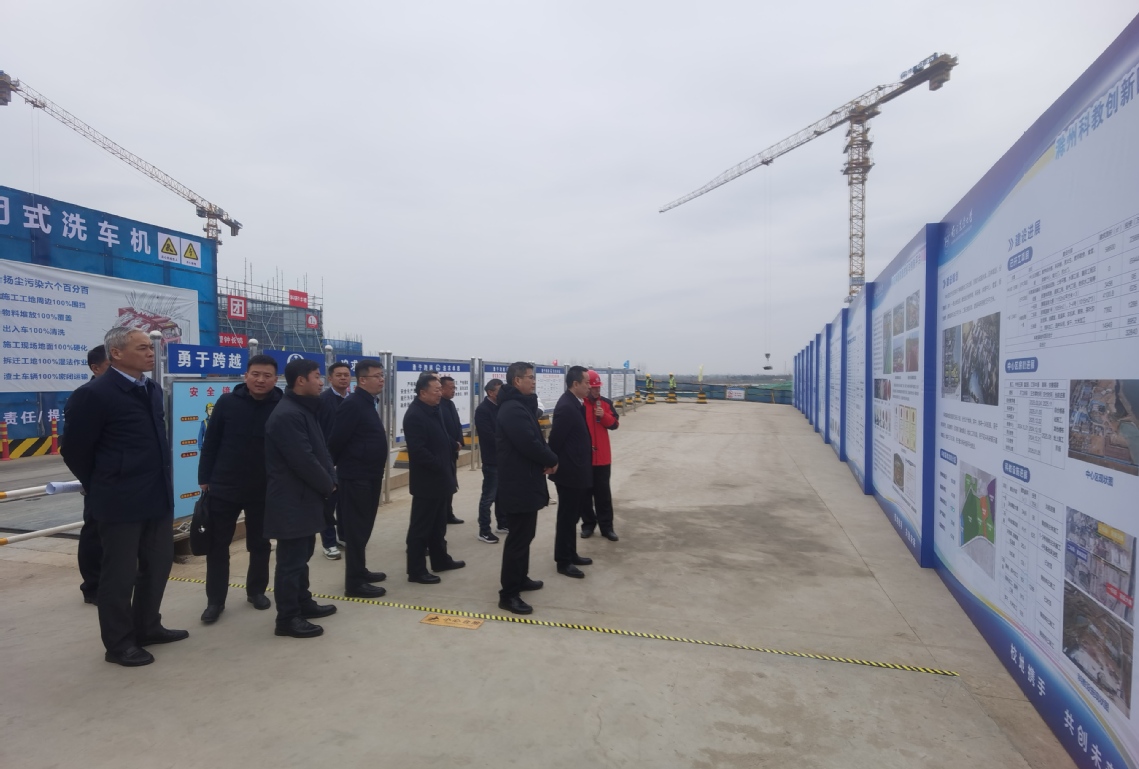 新春伊始,2月11日上午,滁州市市委副书记、市长胡春华率队到sjb世俱杯官方网站滁州科教创新园调研并推进建设工作,学校副校长王源超接待调研小组;滁州市人大副主任苏虹,副市长、市公安局局长马飞,市政府副秘书长陈学武,市委常委、统战部长、全椒县委书记余成林,全椒县委副书记、县长郑冬冬及学校实验室与基地处主要负责人陪同调研。