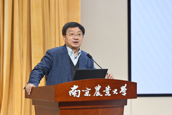 在大会专题报告阶段,浙江工业大学王万良教授作题为《人工智能通识课程建设与赋能“四新”专业建设》报告,校党委副书记、纪委书记吴荣顺作题为《深化以案促改促治 体系化推进廉洁南农建设》报告,中国工程院院士万建民作题为《我国生物育种研究现状与发展趋势》报告。