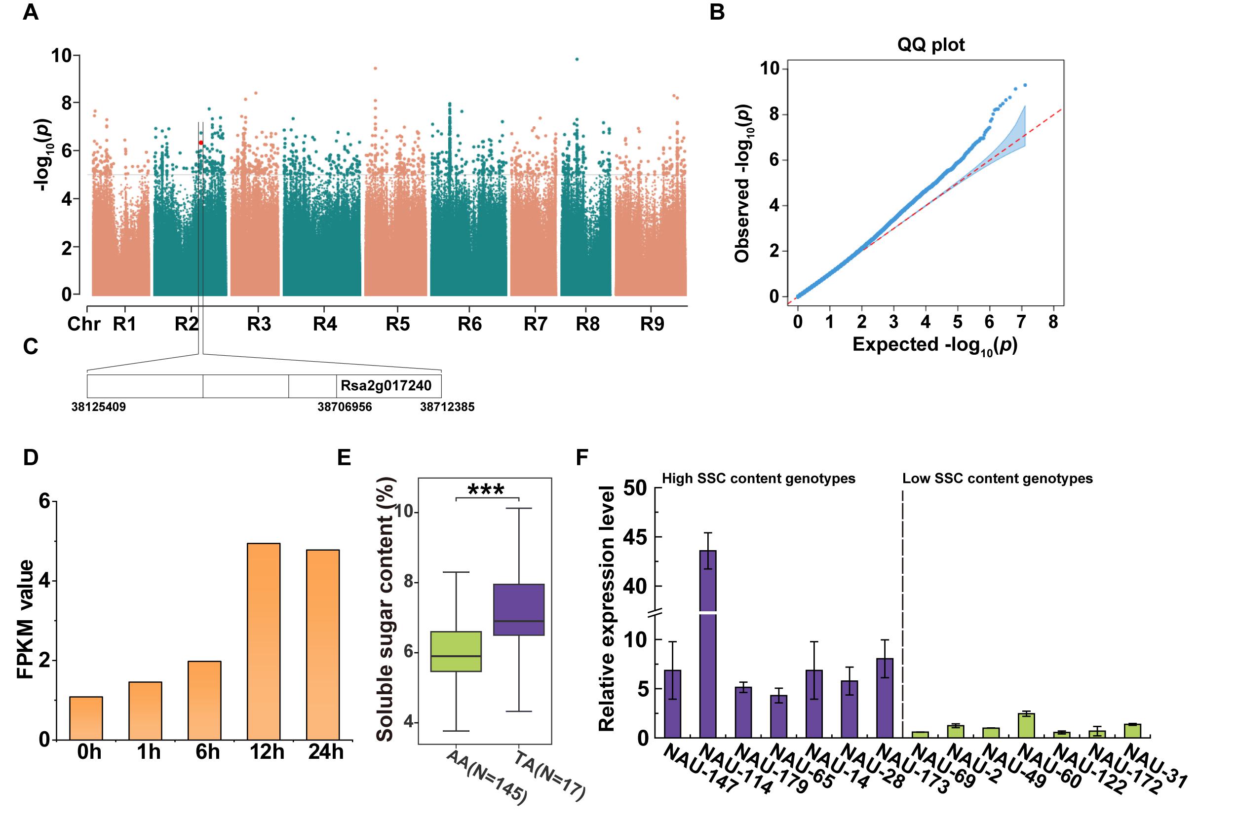 图1萝卜可溶性糖含量的全基因组关联分析