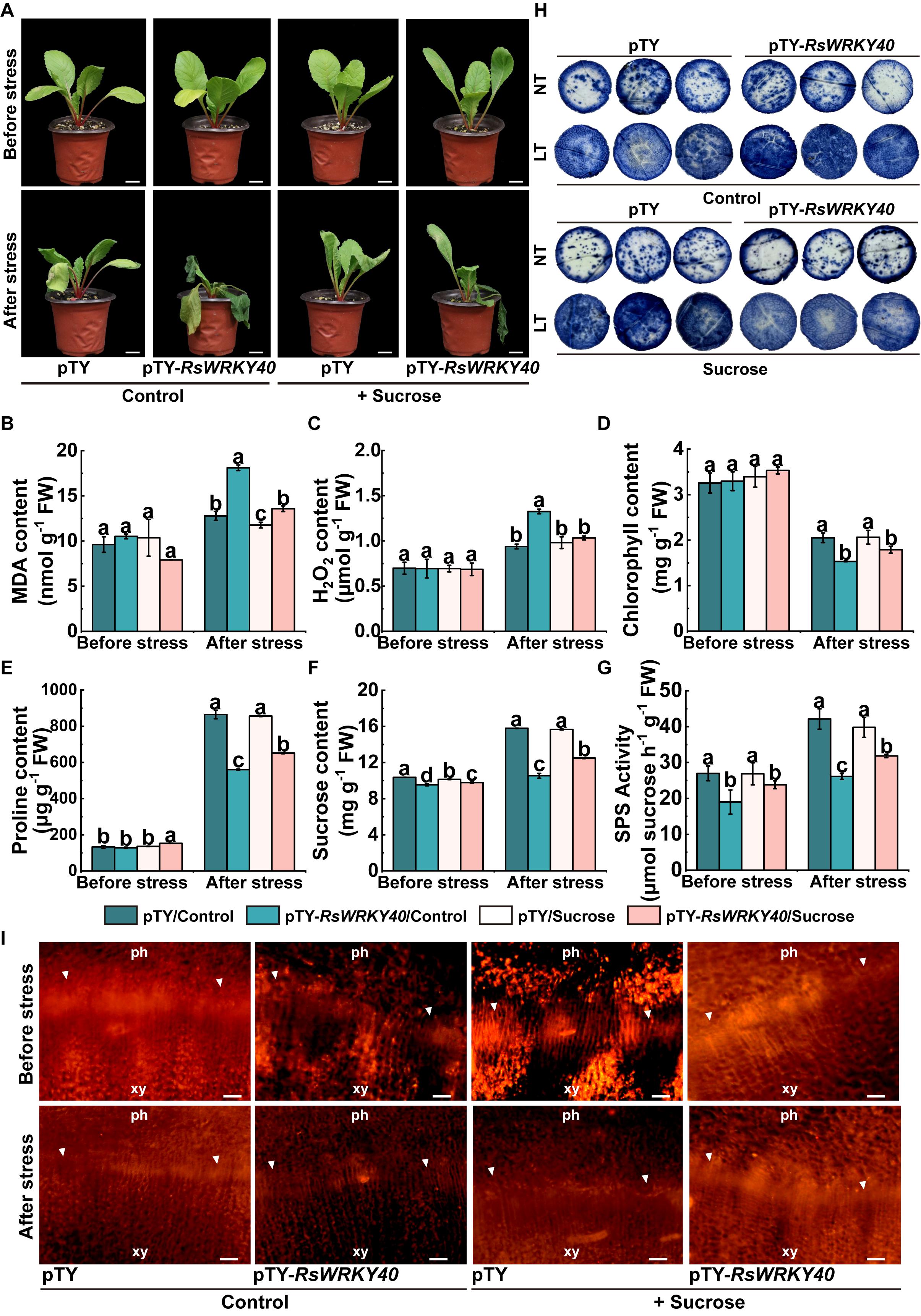 图3 RsWRKY40通过调节蔗糖含量正向调控萝卜的耐冷性