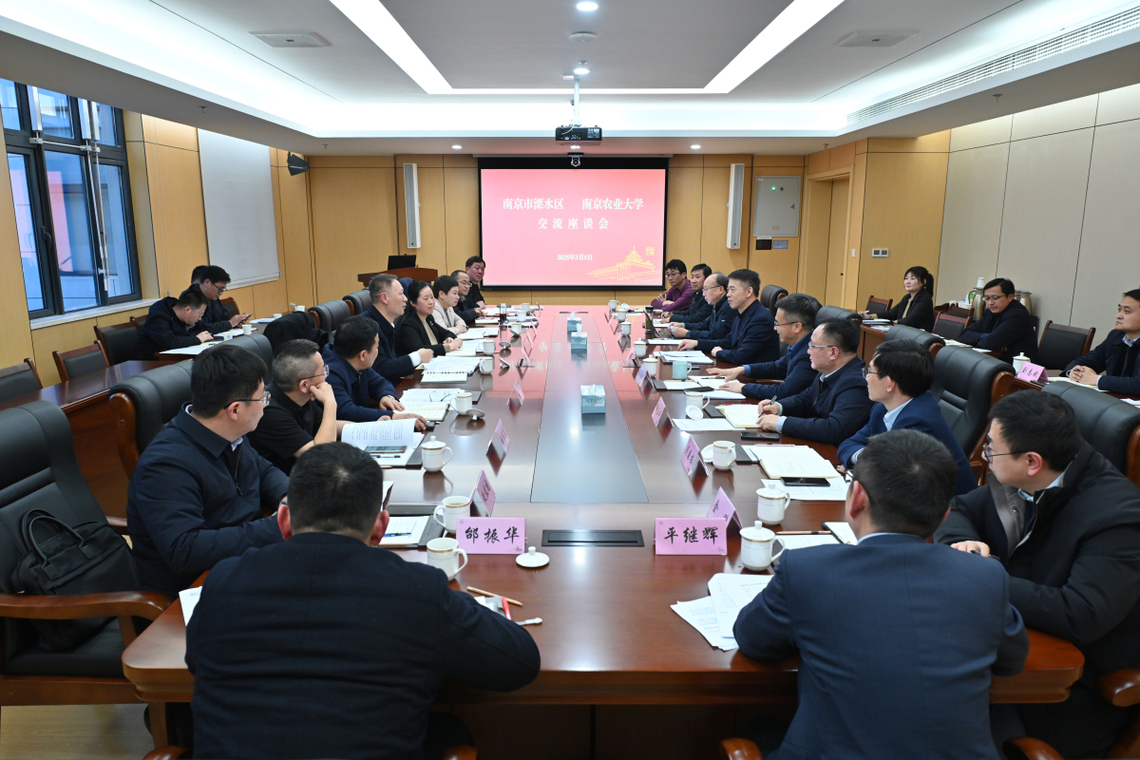 3月5日下午,溧水区委书记张蕴,区委副书记、区长高军玲一行来校调研,深入推进校地合作,共商双方高质量发展。校党委书记王春春,校长陈发棣,副校长丁艳锋、单正丰等出席座谈交流。会议由丁艳锋主持。