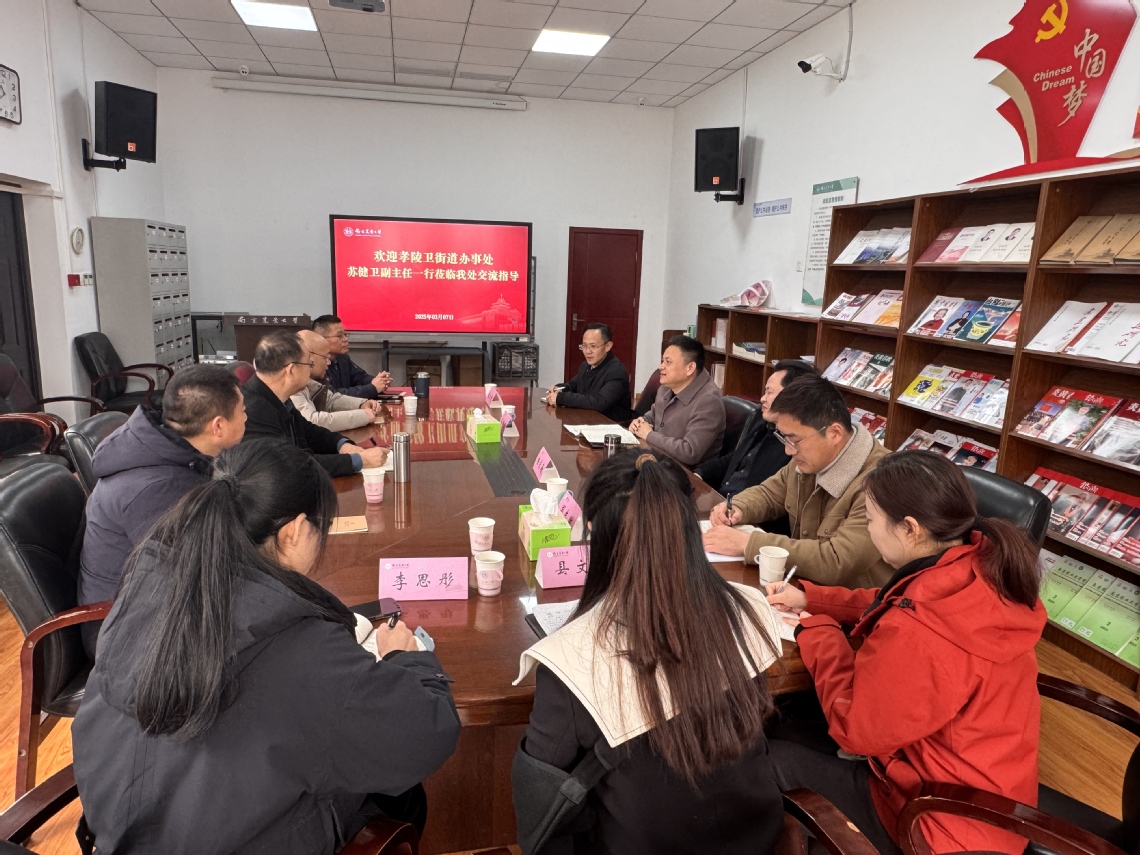 3月7日,南京市玄武区孝陵卫街道办副主任、民生保障办主任苏健卫一行到sjb世俱杯卫岗校区教职工活动中心,与校离退休工作处、后勤保障处共同协商sjb世俱杯官方网站社区建设与发展相关事宜。离退休工作处党工委书记、处长梁敬东、后勤保障处党委书记陈庆春等亲切接待了苏健卫一行。这是继去年11月下旬校地共商社区发展与合作后的再次会商交流。