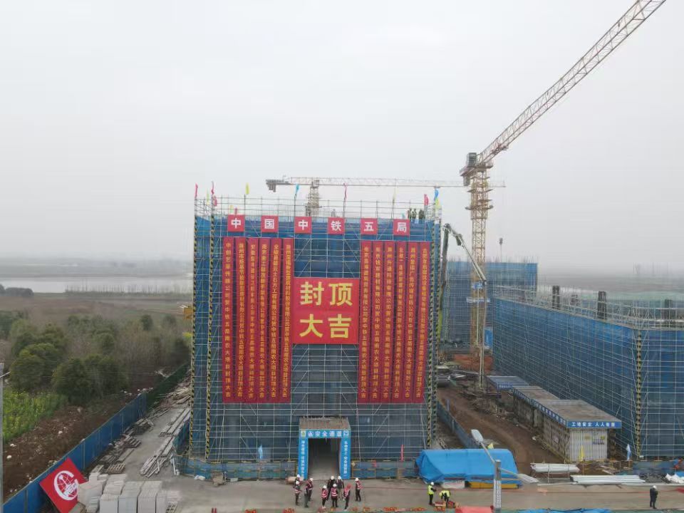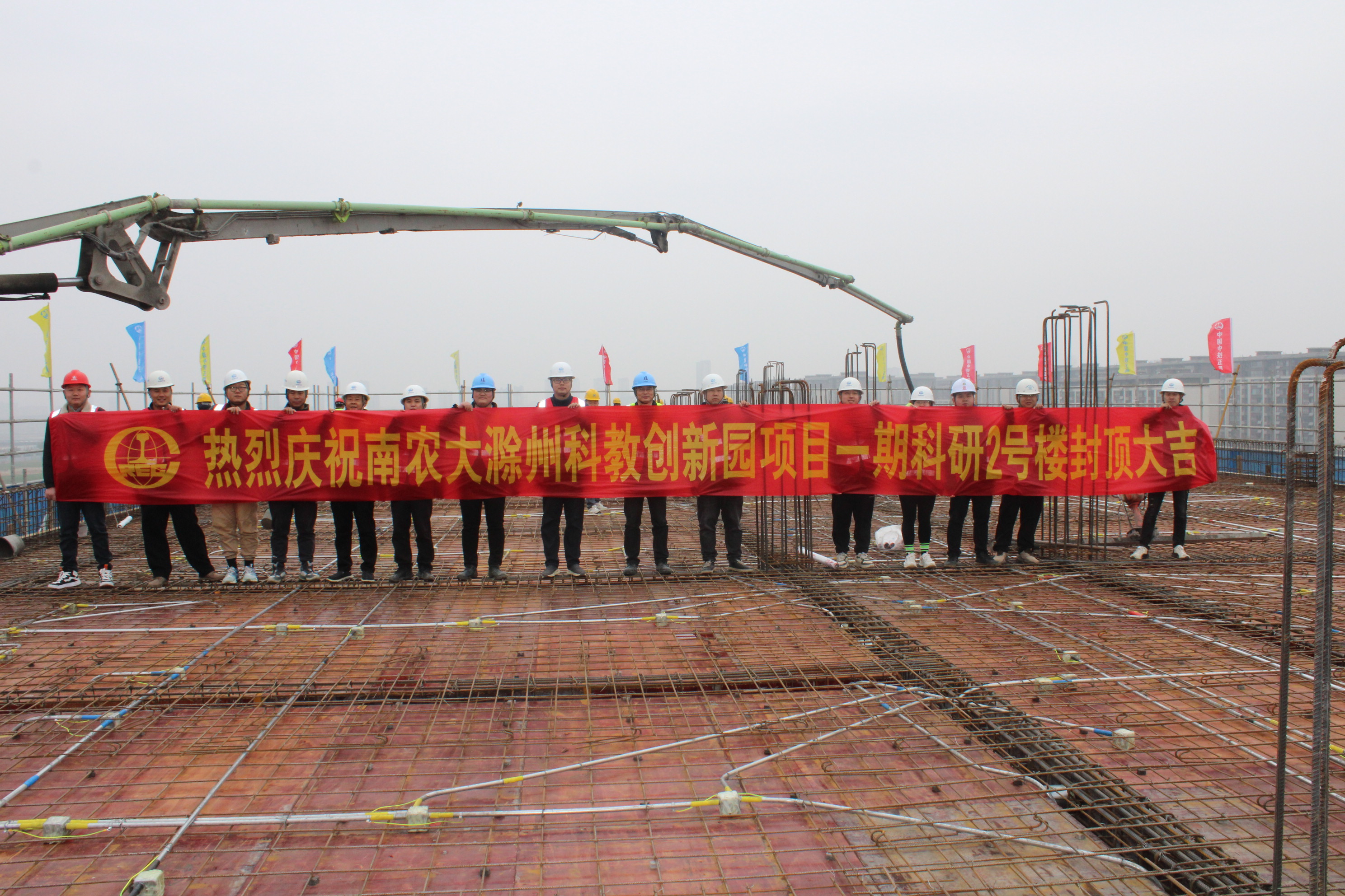 3月13日,sjb世俱杯官方网站滁州科教创新园中心区房建工程男生宿舍楼主体结构封顶,全椒县重点工程中心、中铁五局及各参建单位相关负责人参加封顶仪式。