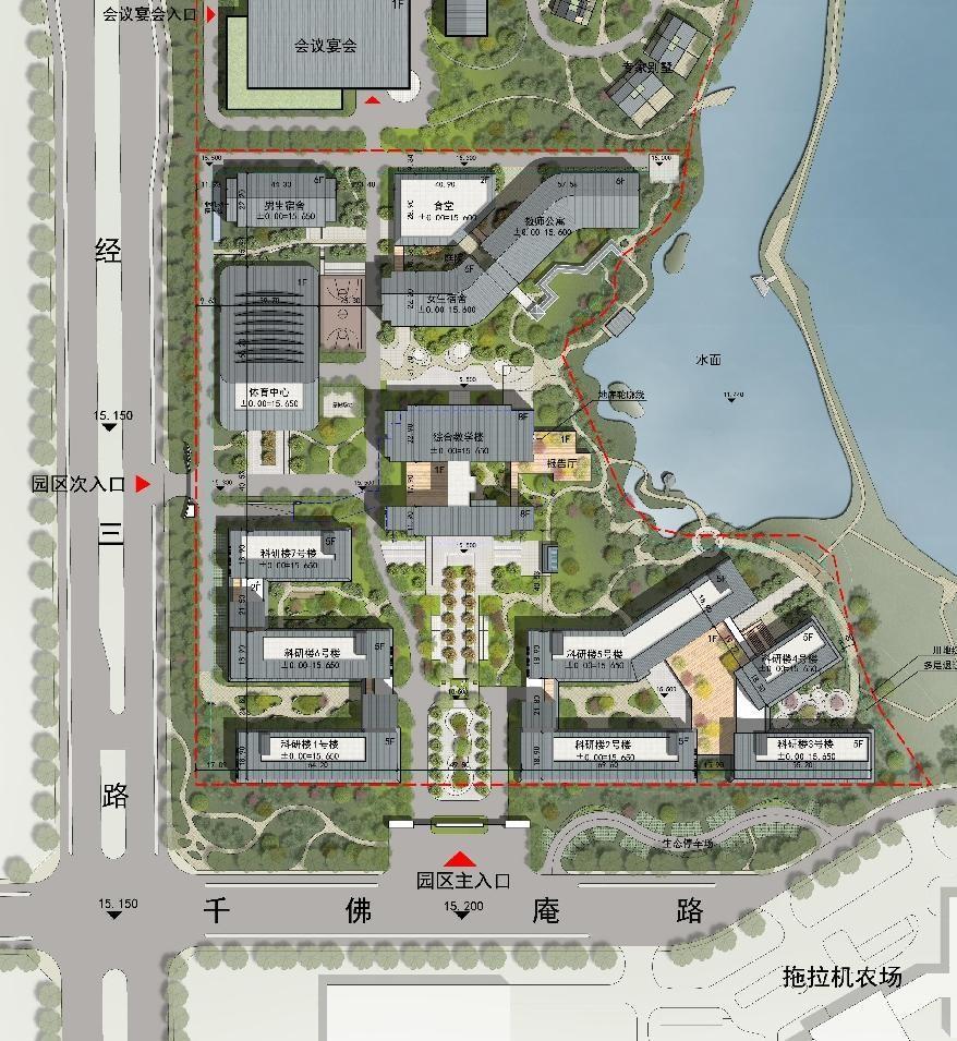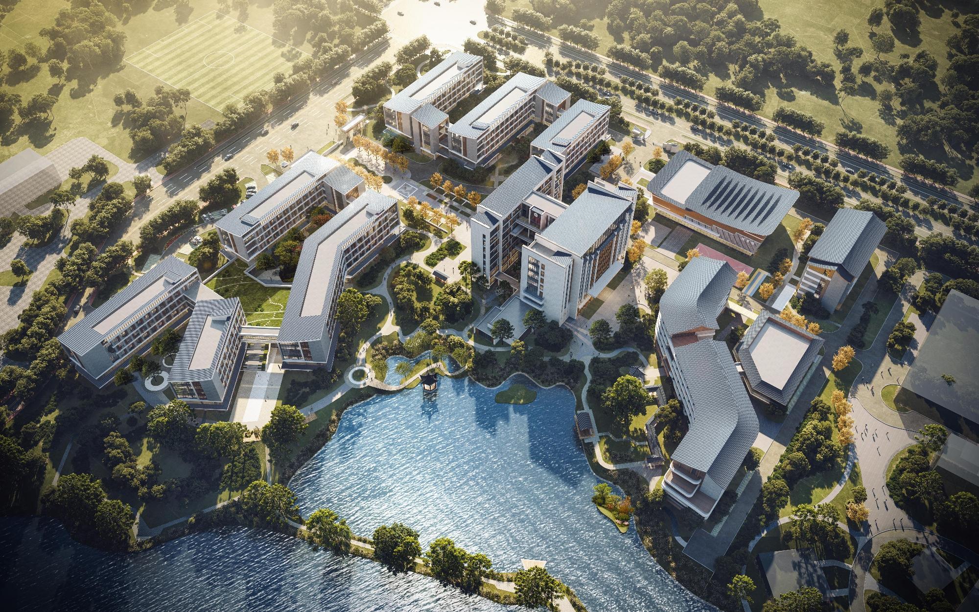滁州科教创新园中心区位于滁州市全椒县沙庄路与千佛庵路交口东北侧,东侧为花园水库,是未来整个科教创新园的核心区域。占地面积80亩,总体规划,分期建设。其中,一期占地50亩,建设综合教学楼、科研楼、体育中心、食堂、学生宿舍及教师宿舍6栋建筑,总建筑面积5.9万平方米,将于2025年年底全面交付使用。