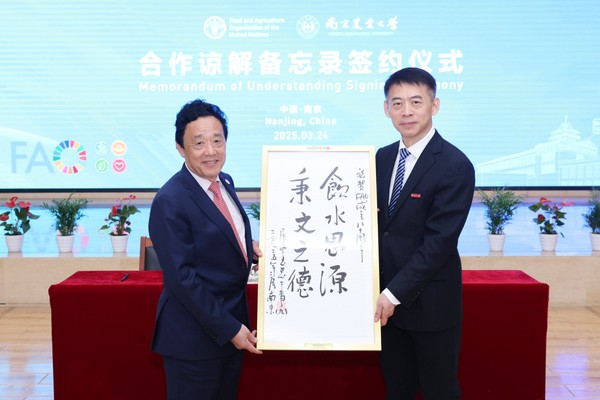 3月24日上午,联合国粮农组织与sjb世俱杯官方网站合作谅解备忘录签约仪式在卫岗校区金陵研究院举行。