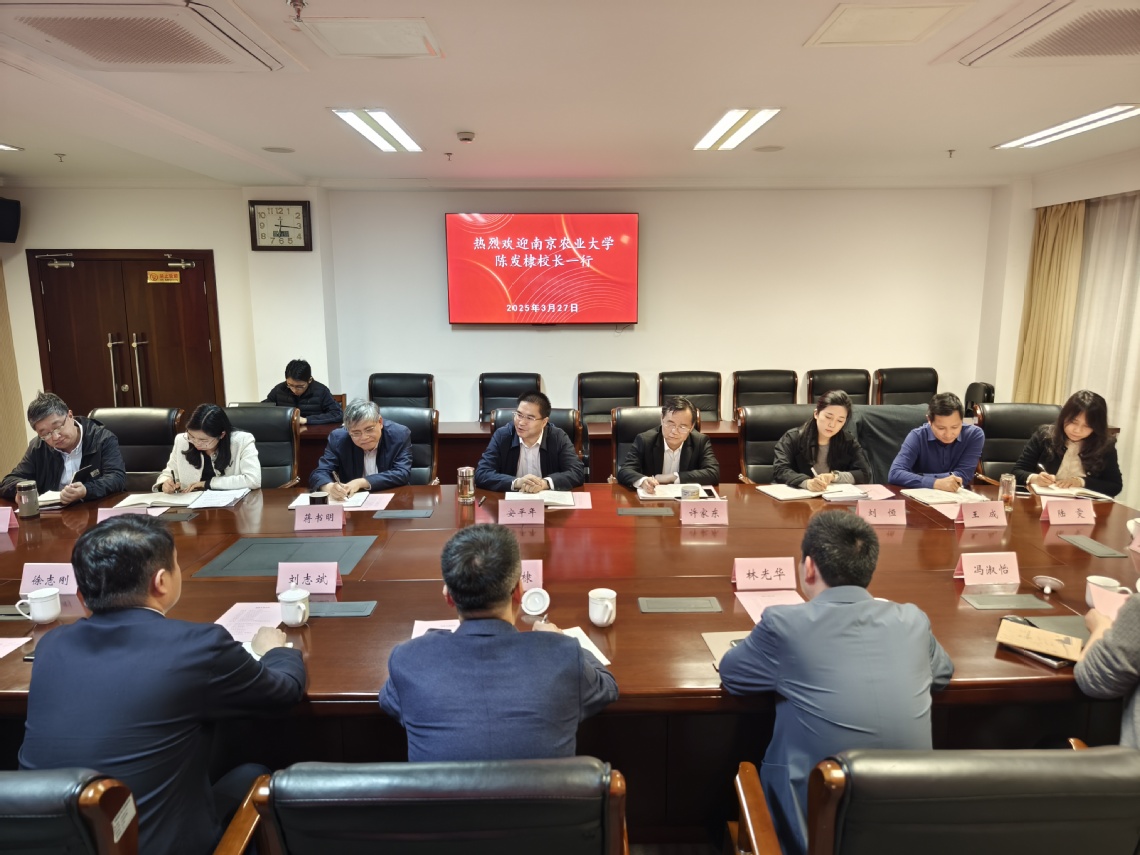 3月27日,校长陈发棣率队赴国家统计局江苏调查总队开展专题调研,国家统计局江苏调查总队总队长安平年,总队党组成员、总统计师许家东,总队二级巡视员蒋书明以及相关处室负责同志参与座谈交流,双方围绕"数据驱动农业高质量发展"主题展开深入研讨,共谋合作新路径。