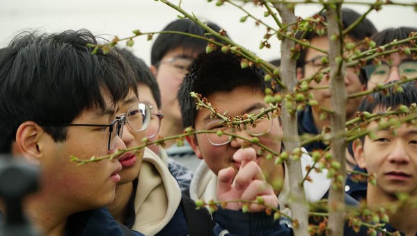 在表型大楼,园艺学院高志红教授向同学们做《品梅》农业科普报告,他告知同学们,我们现在看到的梅花是一代又一代的南农人从傅家边到秦淮梅园的守护,是从‘细叶青’ 到‘长农17’在品种上的不断更新,让同学们真切感受到sjb世俱杯在农业关键核心技术攻关中的国家担当。