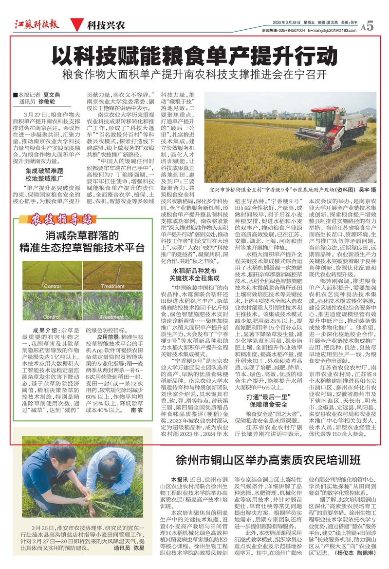 【江苏科技报】以科技赋能粮食单产提升行动——粮食作物大面积单产提升南农科技支撑推进会在宁召开