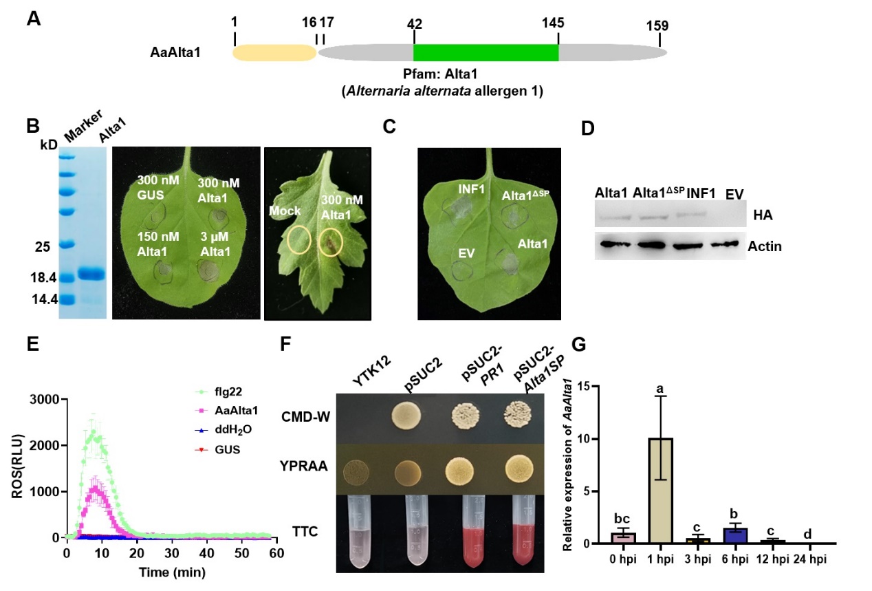 图1 菊花链格孢菌效应蛋白AaAlta1功能鉴定