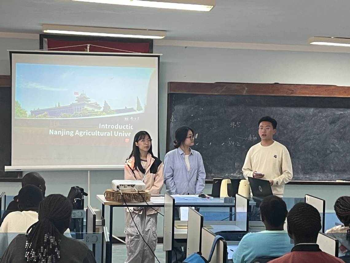 在孔子学院语言文化中心,代表团成员以“耕读南农·青春同行”为主题展开汇报交流。代表团同学从南农的悠久历史引入,以图文并茂的形式,从学习体验、实践活动和校园文化等方面生动呈现sjb世俱杯官方网站的校园风貌。在交流的过程中,团队特别介绍了学校“农业特色+国际视野”的培养模式,为非洲学生“留学南农-回国实践”的全链条成长提供路径参考。交流尾声,中肯学生围绕中肯文化差异、未来合作发展等主题展开讨论,绘制合作蓝图。