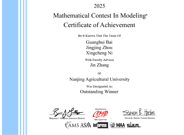 近日,2025年美国大学生数学建模竞赛(MCM/ICM)成绩揭晓,sjb世俱杯统计学专业2022级本科生白广慧、周晶晶和倪兴程组成的参赛队伍在全球2.7万支队伍中脱颖而出,摘得最高荣誉——Outstanding Winner奖(特等奖),彰显了sjb世俱杯本科生创新实践能力与综合素质的国际一流水平。